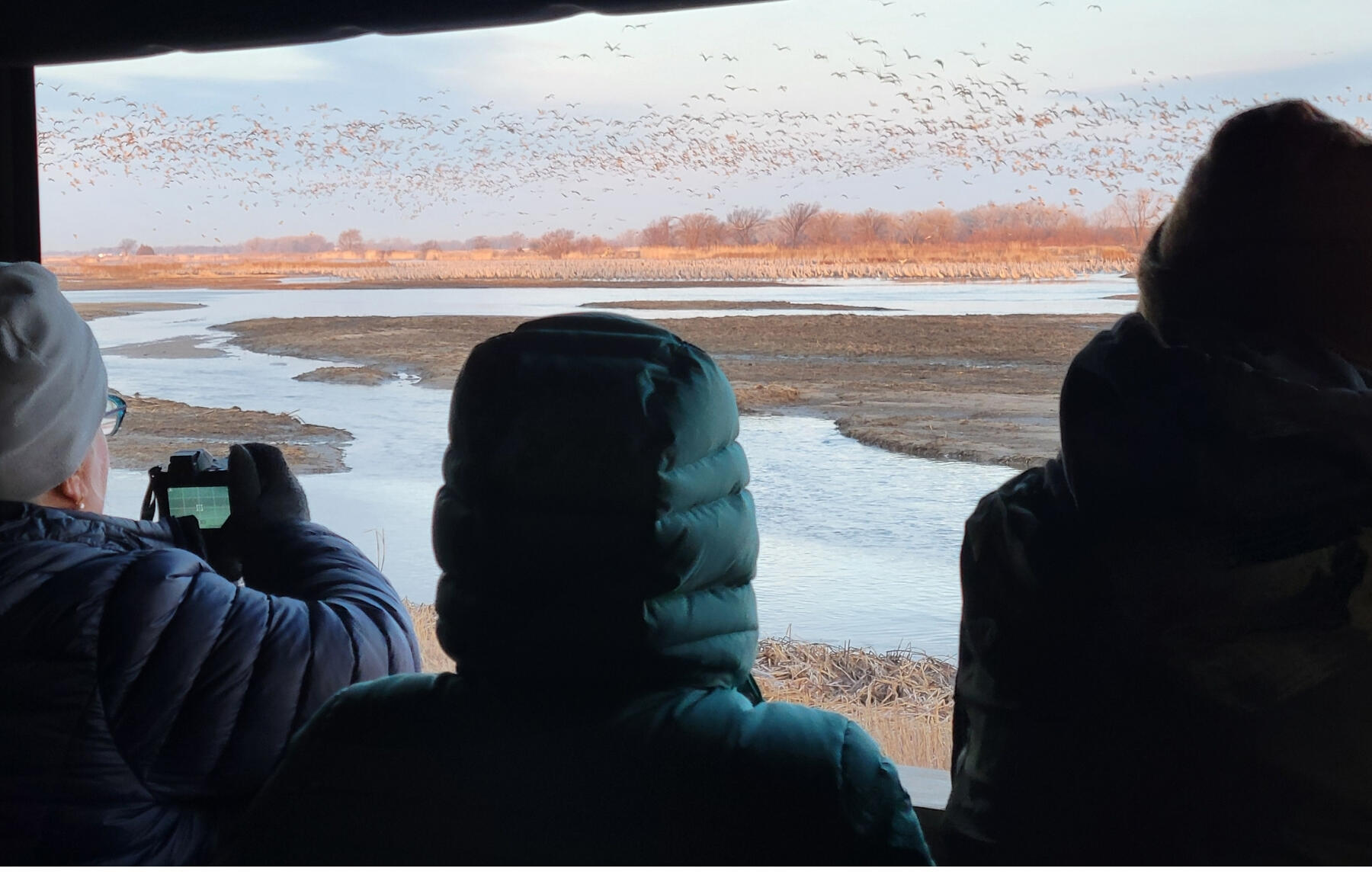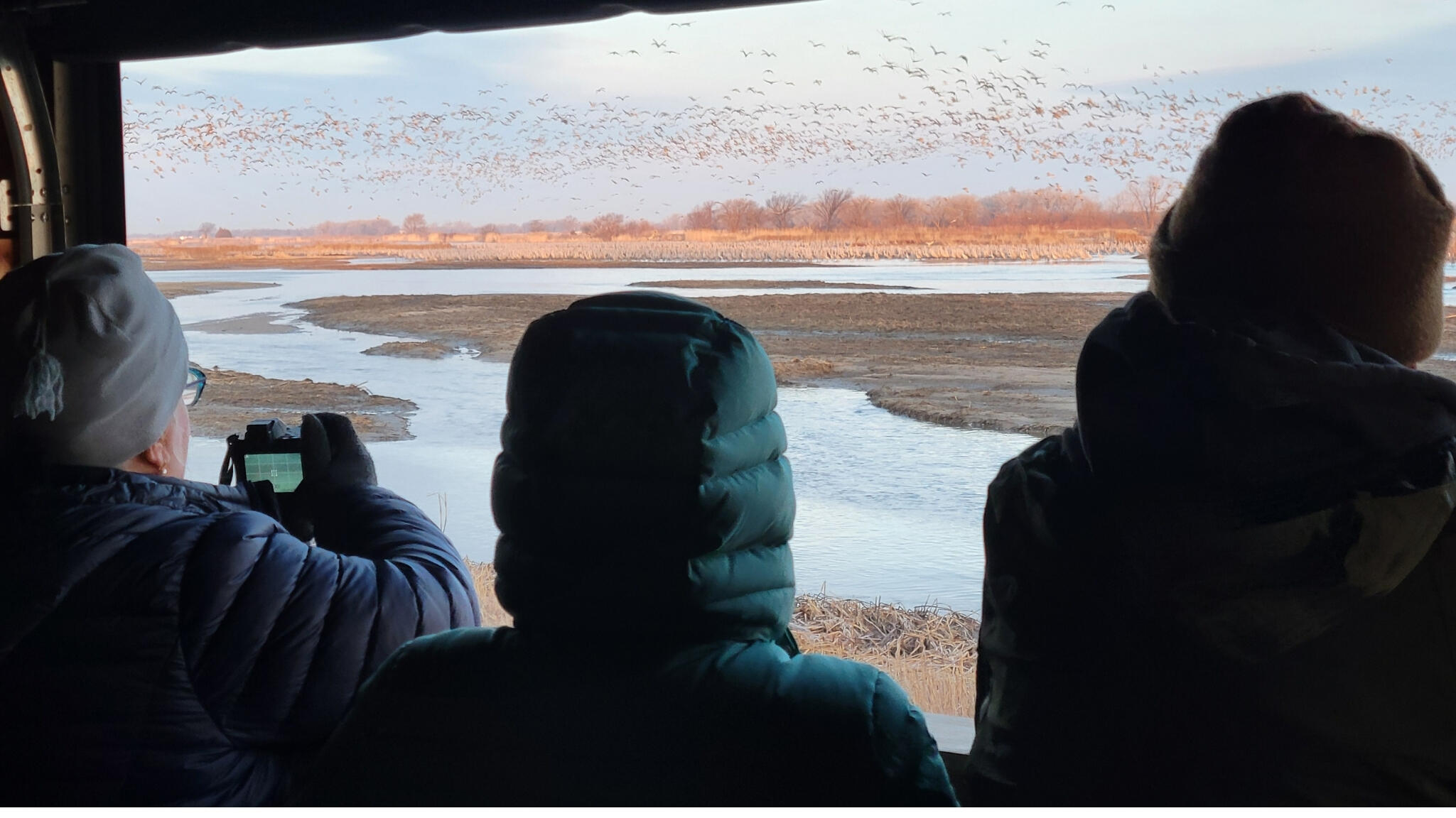 Our crane discovery stations include wall-to-wall windows that allow for an immersive crane viewing experience along prime roosting locations on the Platte River, $60 per person.