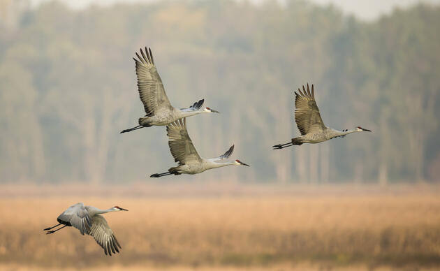 Even though Sandhill Cranes stage in the Platte River valley in large numbers during the spring migration, this is not the case in the fall.